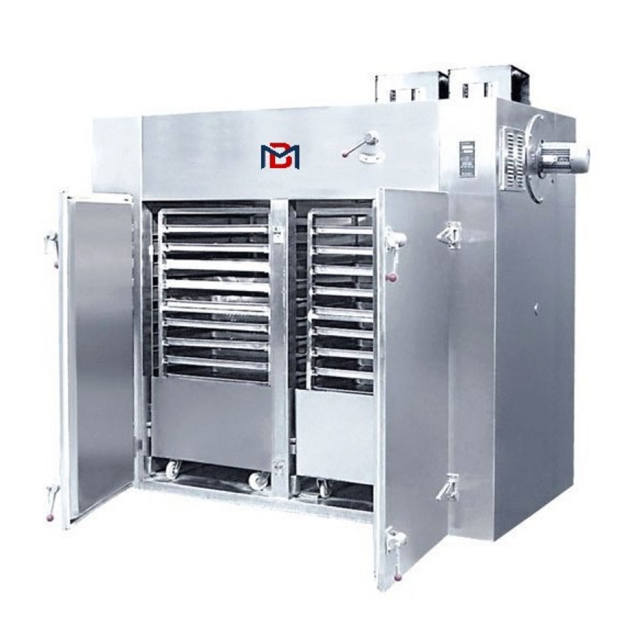 A tray dryer is a commonly used equipment in the pharmaceutical, chemical, food, and other industries for drying various materials in a batch process. It consists of a series of trays on top of each other, where the materials to be dried are placed in thin layers on the trays. Heat transfer is done by circulation of hot air by electric heaters or any other heating media. Blower fans are installed inside to ensure proper circulation and transfer of heat.
